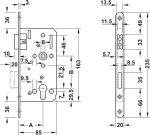 | Werkstoff | Stulp: Edelstahl, Falle: Kunststoff mit Magneteinsatz, Riegel und Drückernuss: Zinkdruckguss, Schlosskasten: Stahl |