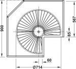 Dreiviertelkreis-Drehbeschlag, Häfele, für Eckschränke, mit Körben/Tablaren