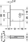 Einsteckschloss, mit Zuhaltung, Dornmaß 15-40 mm, Stulp 80 mm