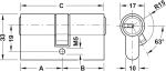 | Funktionsprinzip | Beidseitige Schließbarkeit, d. h. der Zylinder lässt sich bei auf der Innenseite verdreht steckendem Schlüssel von der Außenseite mit dem passenden Schlüssel öffnen. |
